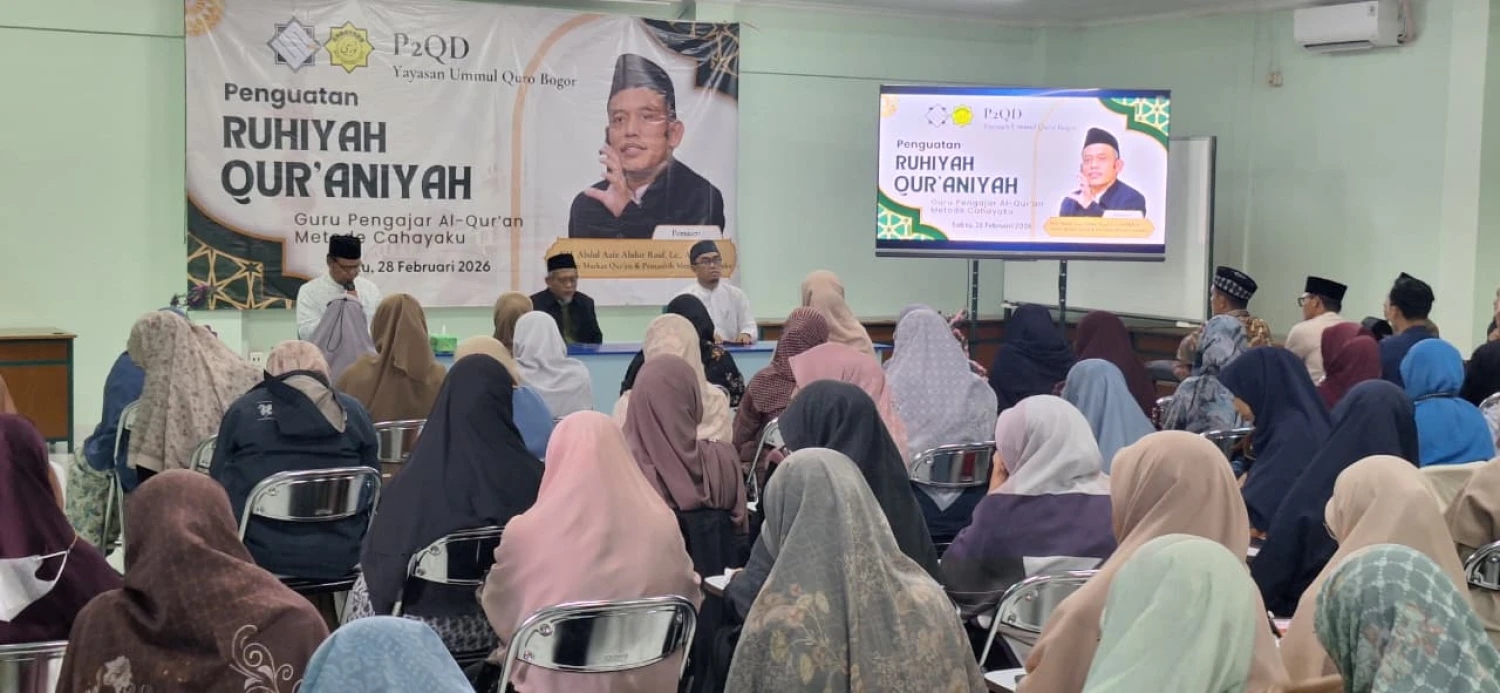 Dalam upaya memperkuat komitmen dan kualitas ruhiyah para pengajar Al-Qur’an, bagian P2QD (Pengembangan Pembelajaran Al-Qur’an dan Diniyah) Yayasan Ummul Quro Bogor sukses menyelenggarakan kegiatan Penguatan Ruhiyah Qur’aniyah Guru Al-Qur’an Metode CAHAYAKU pada Sabtu, 28 Februari 2026.